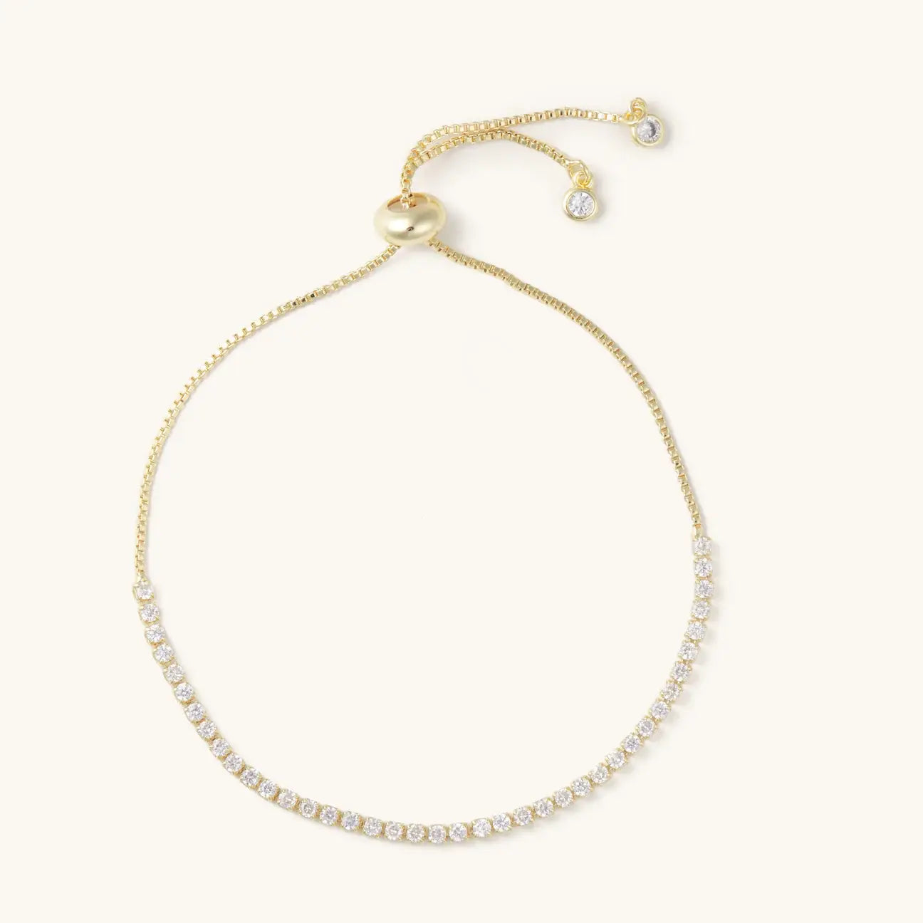 Elevate your everyday elegance with this stunning gold diamond slider bracelet. Featuring a sleek design that seamlessly adjusts to fit your wrist perfectly, this piece combines timeless sophistication with modern versatility. The brilliant diamonds catch light beautifully, adding just the right amount of sparkle without overwhelming your look. Whether you're dressing up for a special occasion or adding polish to casual wear, this bracelet transitions effortlessly between any setting. A luxurious accessory that feels as refined as it looks.