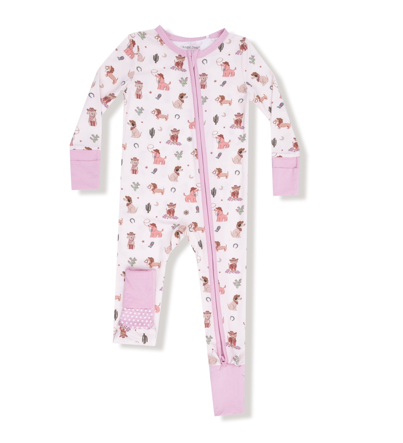 This Angel Dear Cowgirl Dog Romper crafted from organic cotton offers gentle comfort and breathability for your little one. Its soft fabric is complemented by a convenient two-way zipper, allowing easy dressing and quick diaper changes. The romper features a handy roll-to-cover design that can either keep tiny feet warm or reveal an ankle cuff for added mobility. Combining practicality with cozy style, it’s an ideal choice to keep your child snug while embracing sustainable materials.