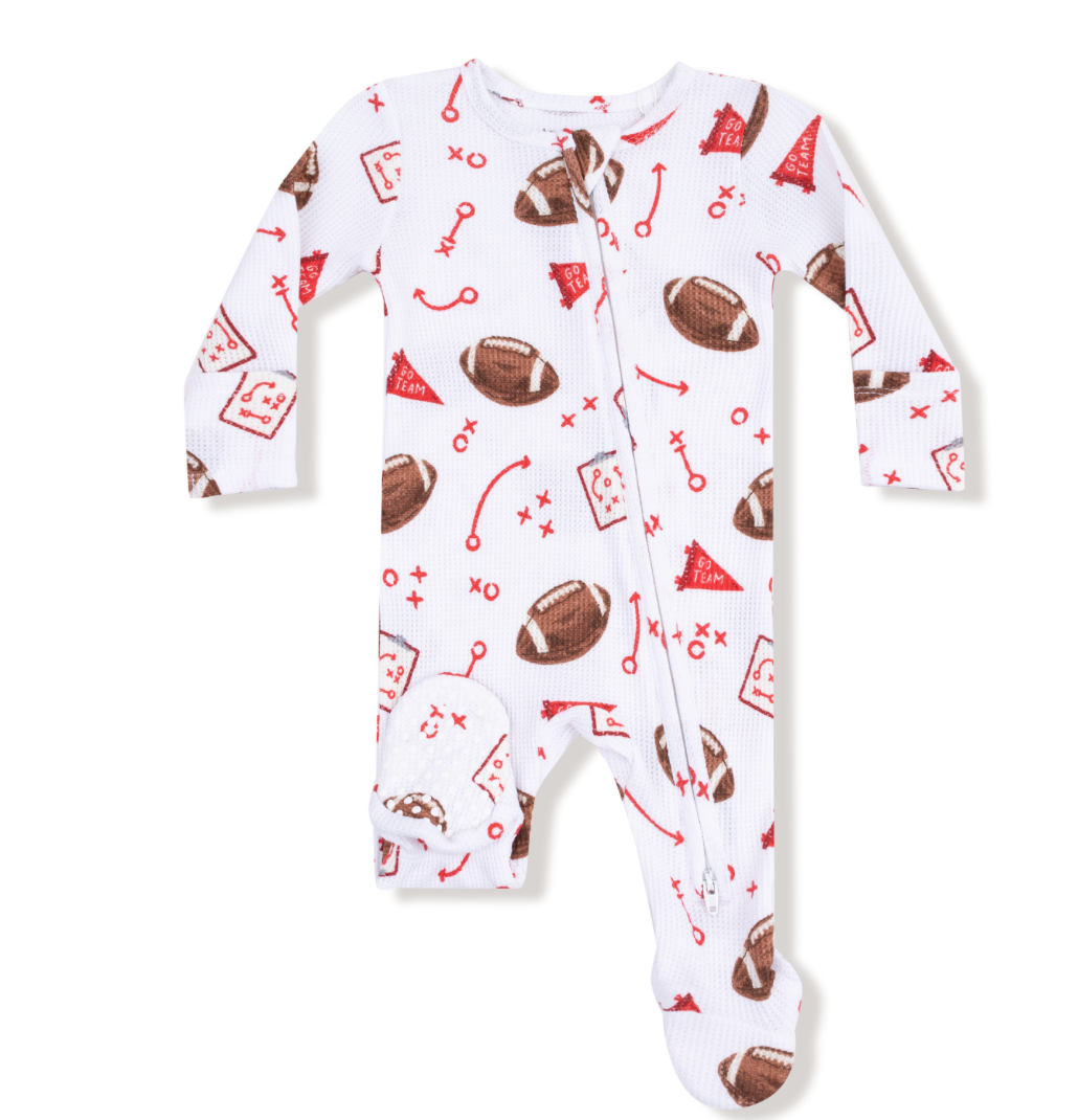 This Angel Dear Touchdown Time Red Romper combines practicality with comfort. Made from lightweight, organic cotton, it is super soft against your baby's skin, ensuring all-day coziness. The thoughtful two-way zipper and footie design make dressing and changing effortless, while keeping little feet warm. Perfect for everyday wear, this romper offers a gentle, breathable fit that your baby will love.