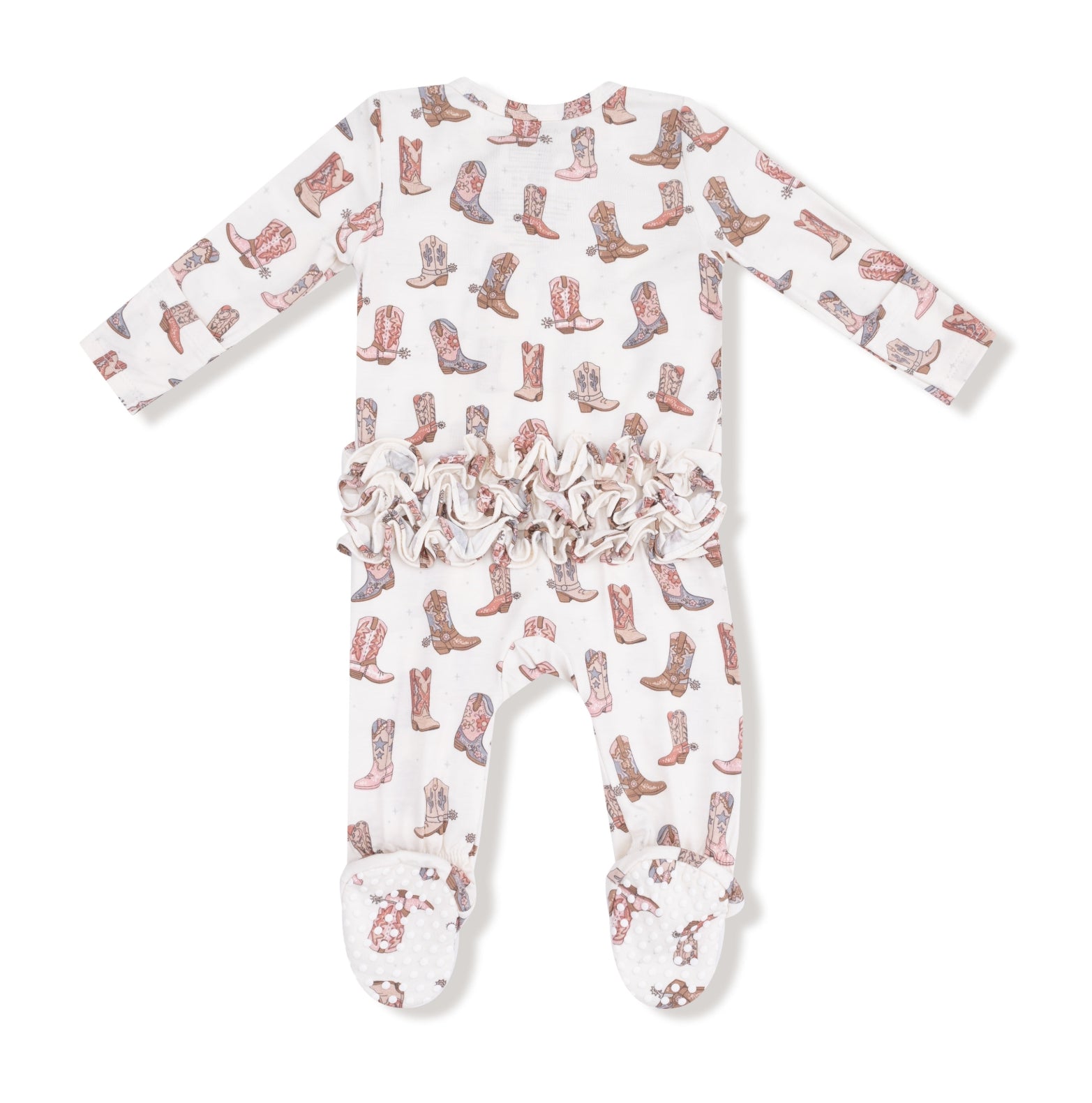 Dress your little one in the Angel Dear Future Cowgirl Footie, crafted from soft organic cotton for ultimate comfort and gentle care. Featuring a practical two-way zipper, this footie makes dressing and diaper changes effortless. The cute cowgirl boots design adds a playful touch, perfect for introducing a touch of western style to your baby's wardrobe. Designed for ease and cozy wear, this footie keeps your child comfortable while capturing their adventurous spirit.