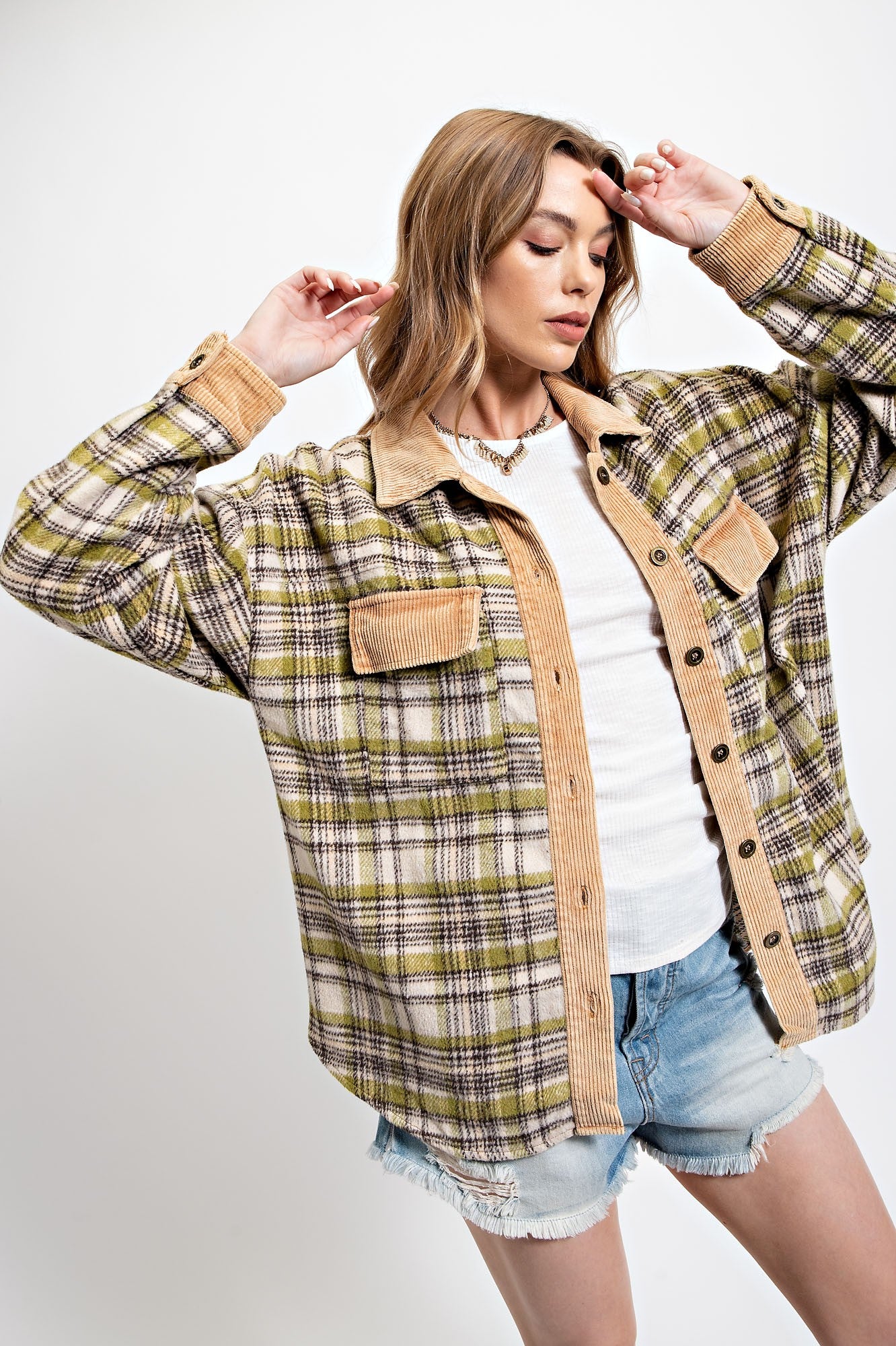 This premium Hagan Plaid Shacket features a classic plaid pattern in earthy colors perfect for your outdoor look. The shacket is slightly heavier than a shirt, with a button down closure and a wool-like texture. Perfect for any cold-weather activity, this piece will keep you warm and stylish.