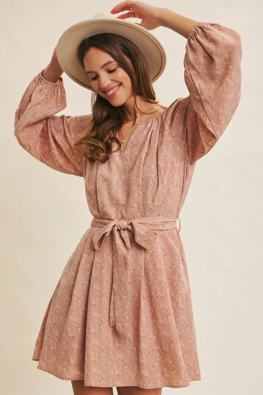 Elevate your wardrobe with this Romantic Floral Printed Dress, featuring long sleeves and a flattering belted waist that enhances your silhouette. Designed with convenient pockets and a delicate, light floral print, this mini dress effortlessly combines style and comfort. Perfect for daytime outings or evening gatherings, it adds a touch of romance to any look.