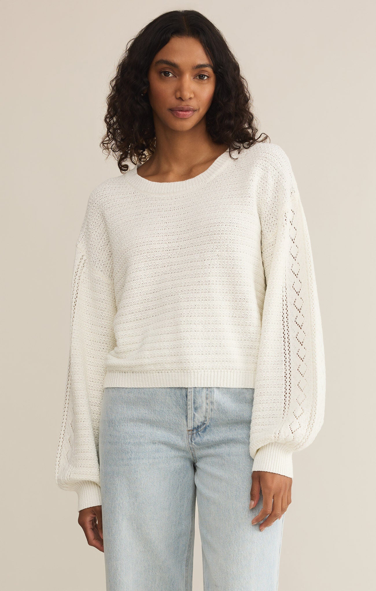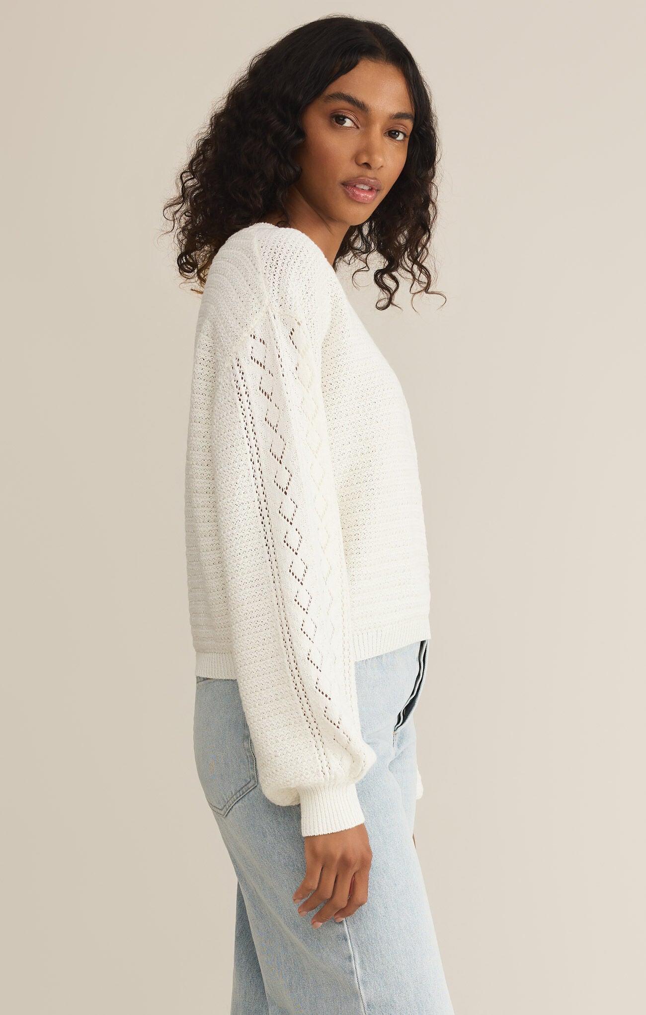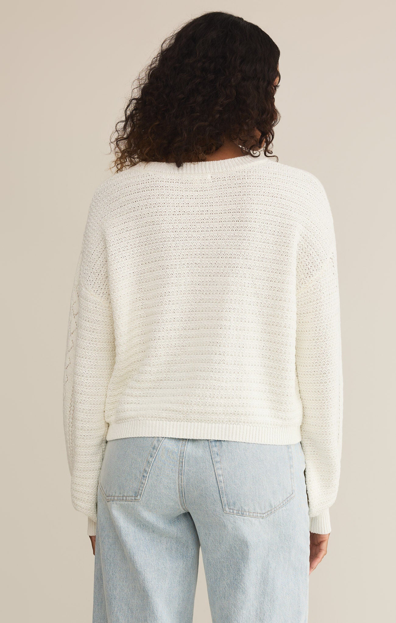 Experience effortless style and comfort with our Whitney Crochet Sweater. This lightweight, long-sleeved sweater in white is perfect for any occasion. Stay cozy and chic all day long!